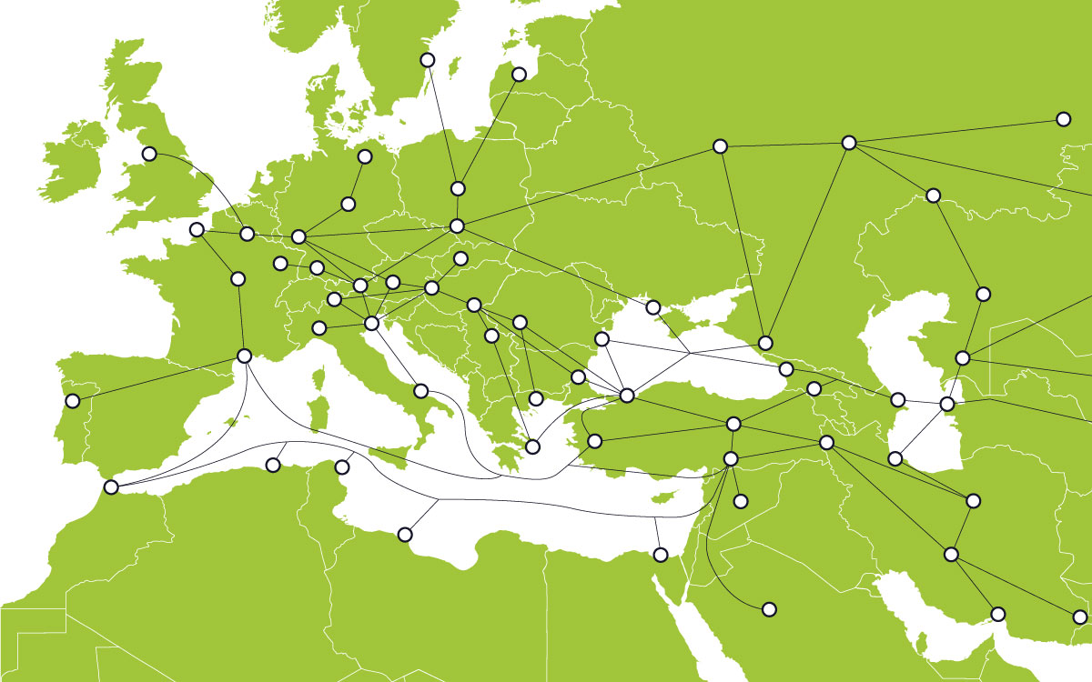 Demir, deniz, kara ve hava yolu taşımacılığındaki ortaklarımızla optimize bir lojistik ağı kurduk. Böylelikle birçok farklı taşıma şeklini kapsayan intermodal çözümler sunuyoruz. Hem etkin hem de en çevreci rotaları belirleyebiliyoruz.